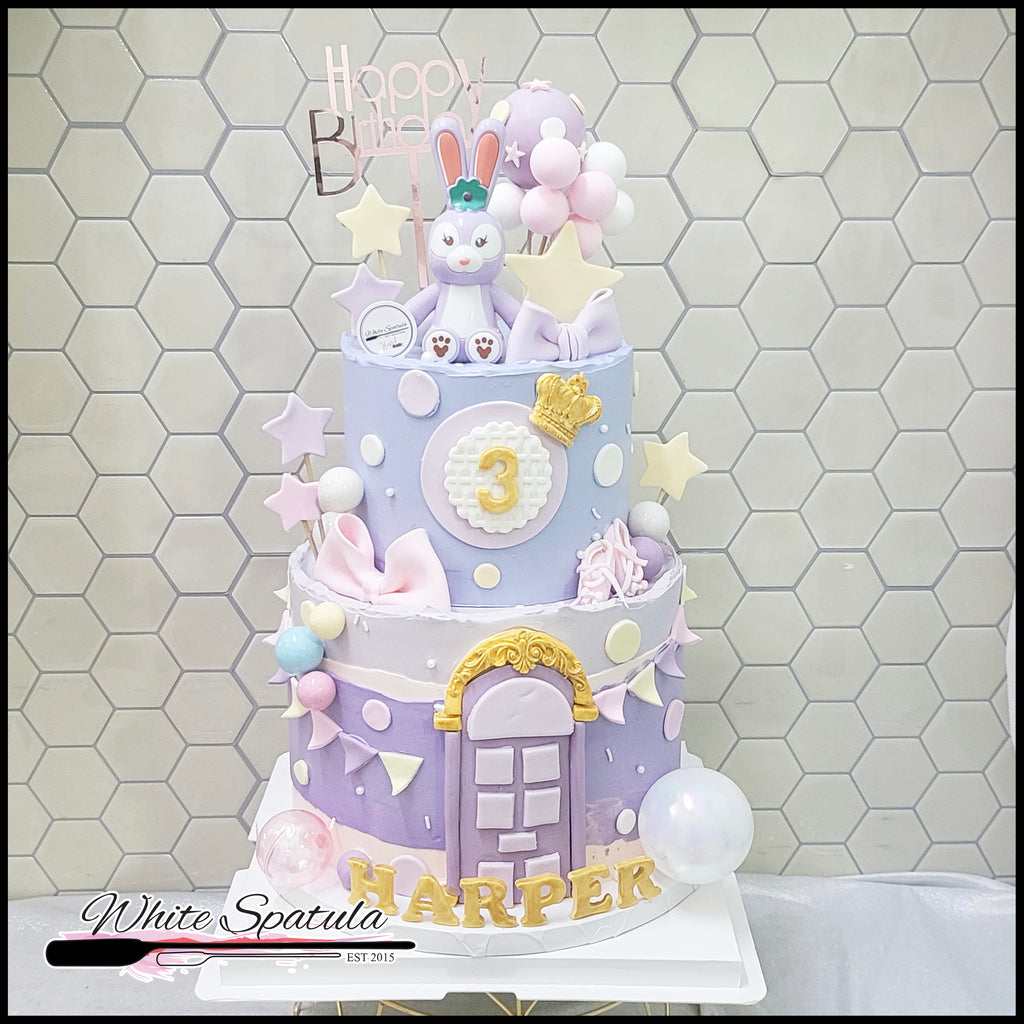 This cake is iced with a smooth and not-so-sweet vanilla buttercream and comes with fondant Rabbit character as part of the design. Nobody would resist a picture with this cute little bunny cake in your party!