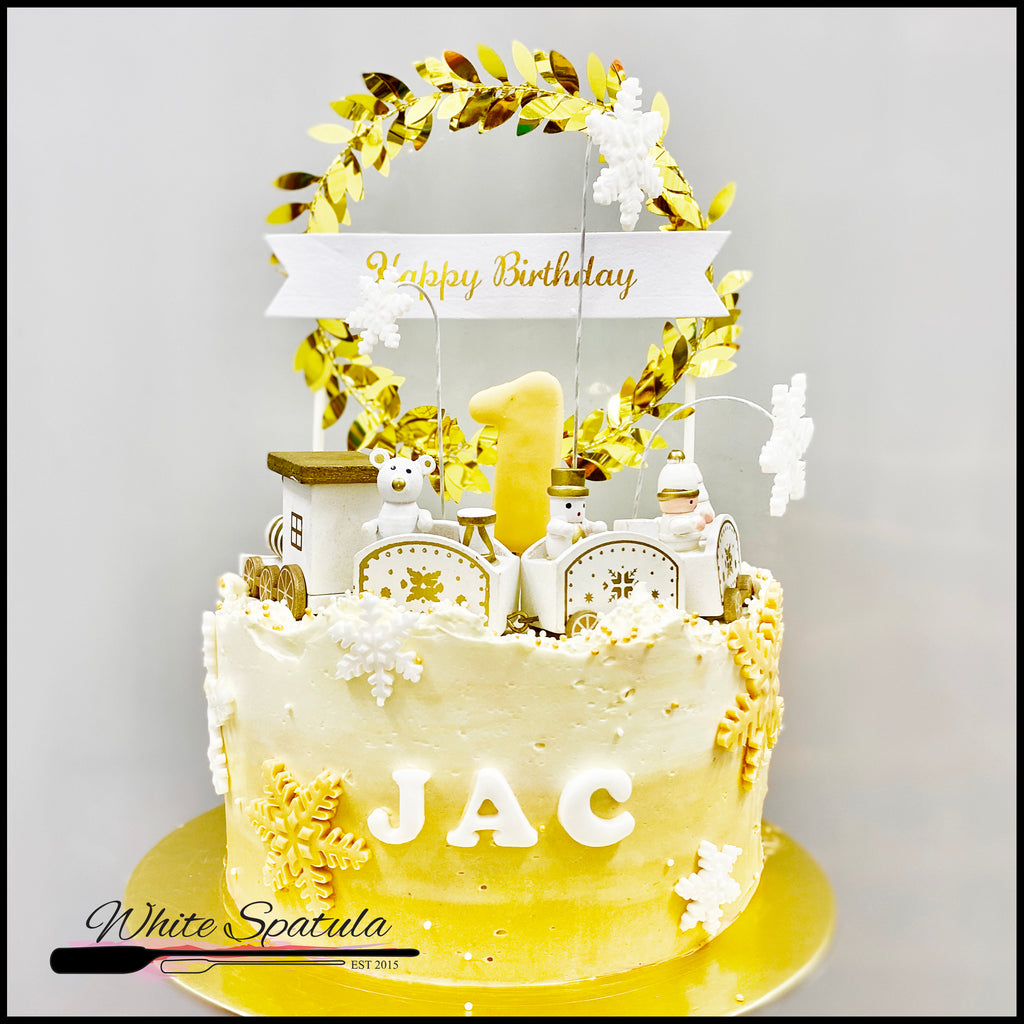 This cake is iced with a smooth and not-so-sweet vanilla buttercream, topped with a beautiful train that can be kept as a toy or souvenier. At White Spatula, each cake is carefully handcrafted decorated and freshly baked, to bring out the beauty of the cake design. We believe you deserved nothing less than a perfect cake for your party!