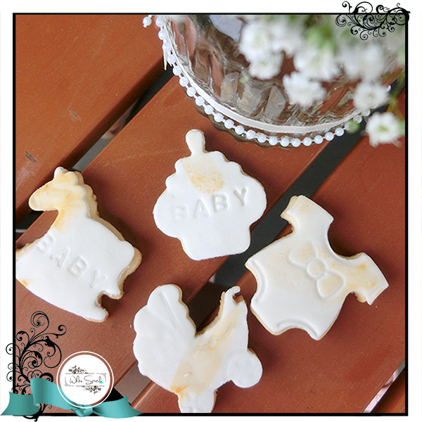 Our Fondant Cookie Set comes with 20 pieces of cookies at S$3 each for standard design (such as baby shower set, numbers/letters, etc.)