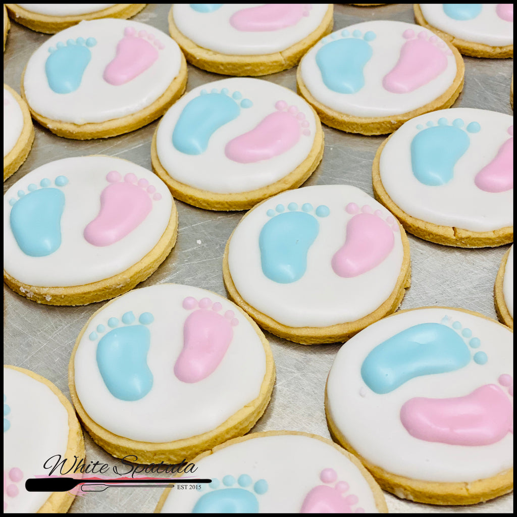 Our classic butter sugar cookies coated with royal icing design! IGender Reveal icing cookie is here!