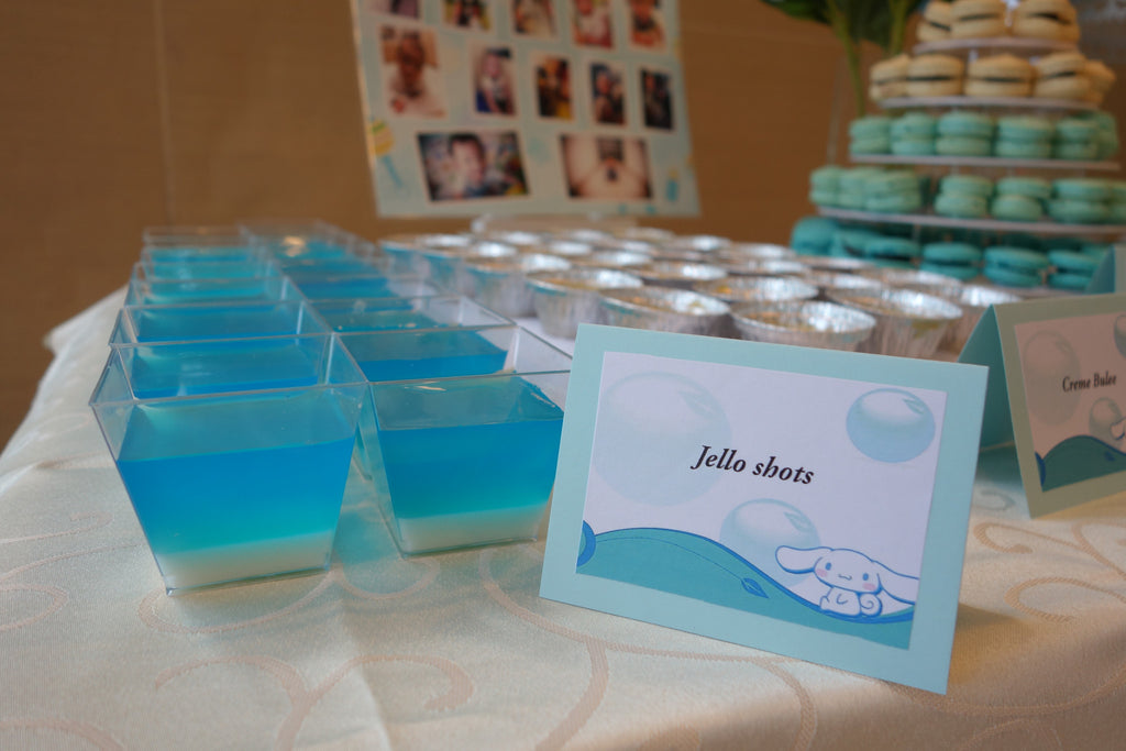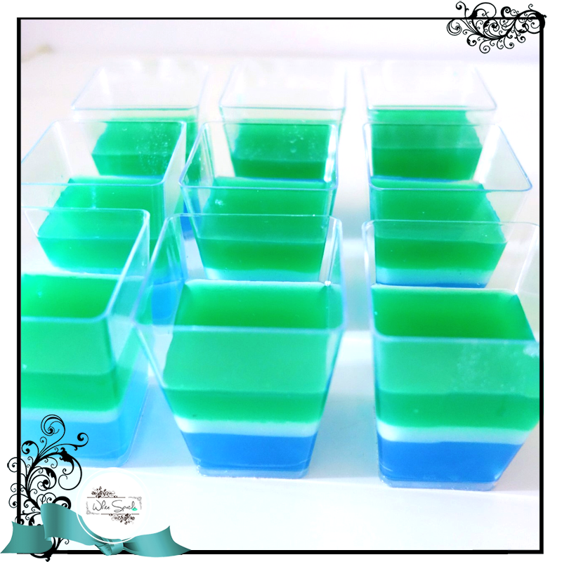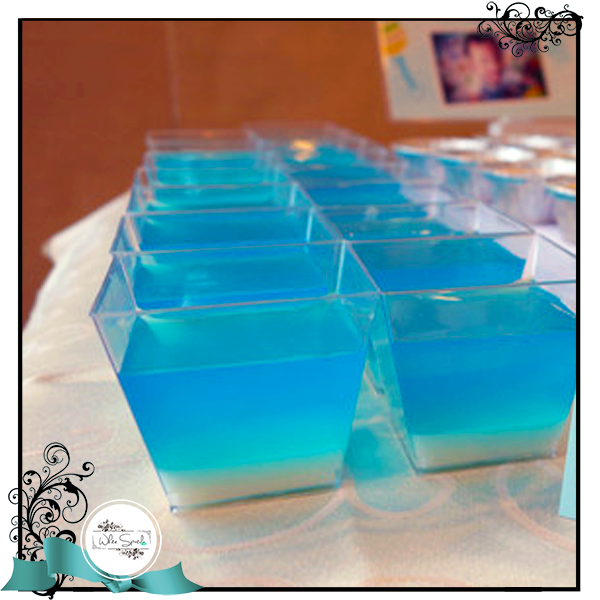 A 2-3 layers jelly in classy shooter cups. Great as stand-alone display for any dessert table.