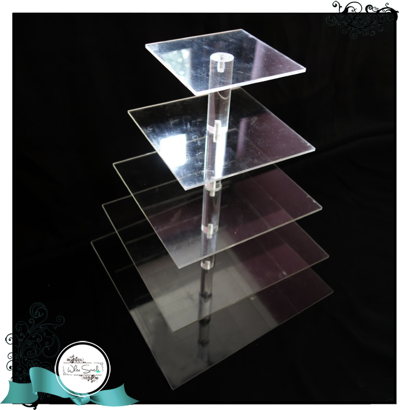 An elegant 5 or 6-tiered acrylic display stands, suitable for cupcakes, tarts, mini cakes, canapes etc.