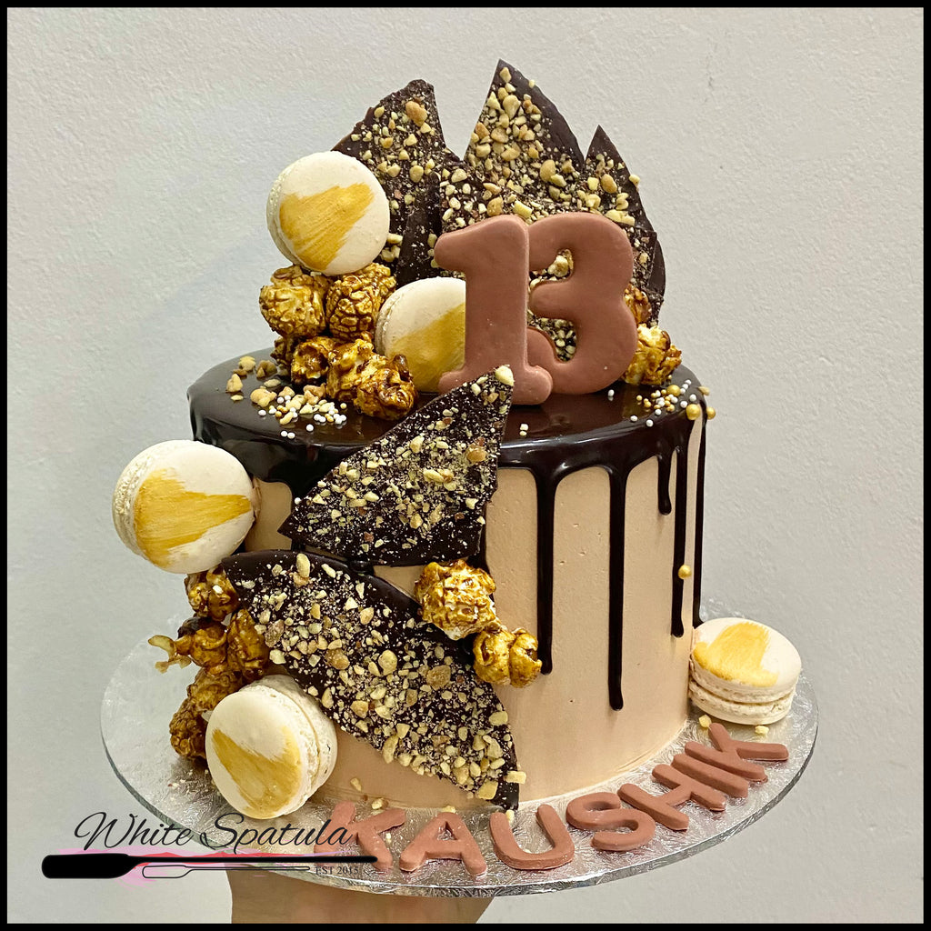 This cake is iced with a smooth and not-so-sweet buttercream and filled with chocolates and nuts. There will be no 2 exact same cake for this design because we want you to have a very special cake just for your birthday!