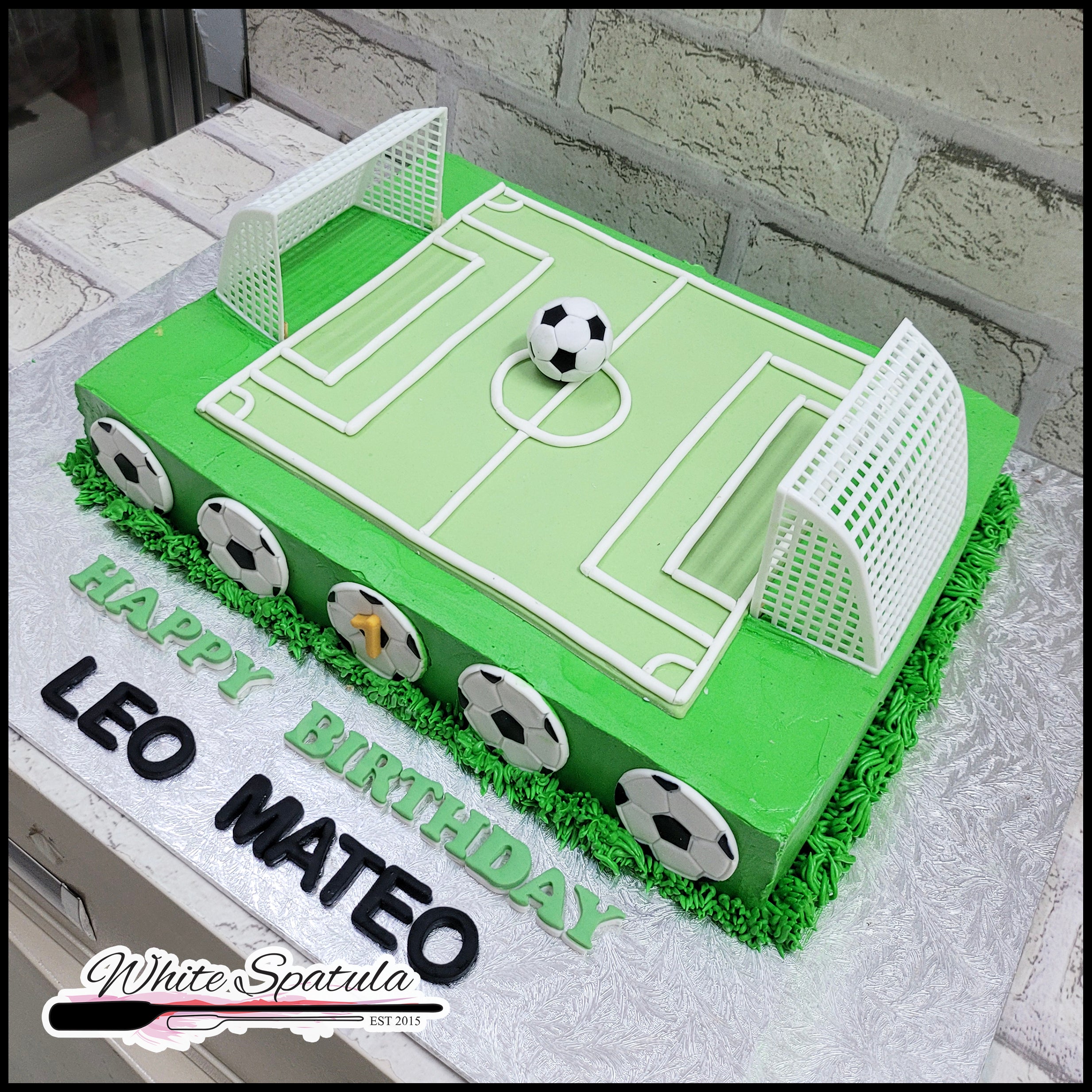 This cake is iced with a smooth and not-so-sweet vanilla buttercream. For all the  football / soccer lovers.